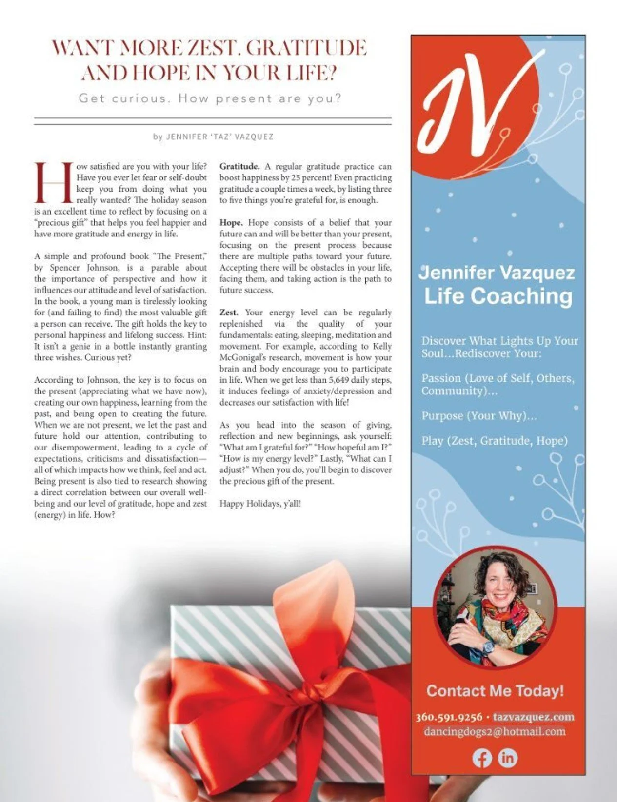 Jennifer Vazquez 12/21/22 Jennifer Vazquez 12/21/22 Want More Zest, Gratitude, and Hope in Your Life? Get Curious - How Present Are You? Read More